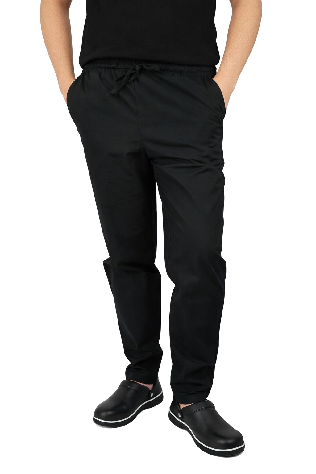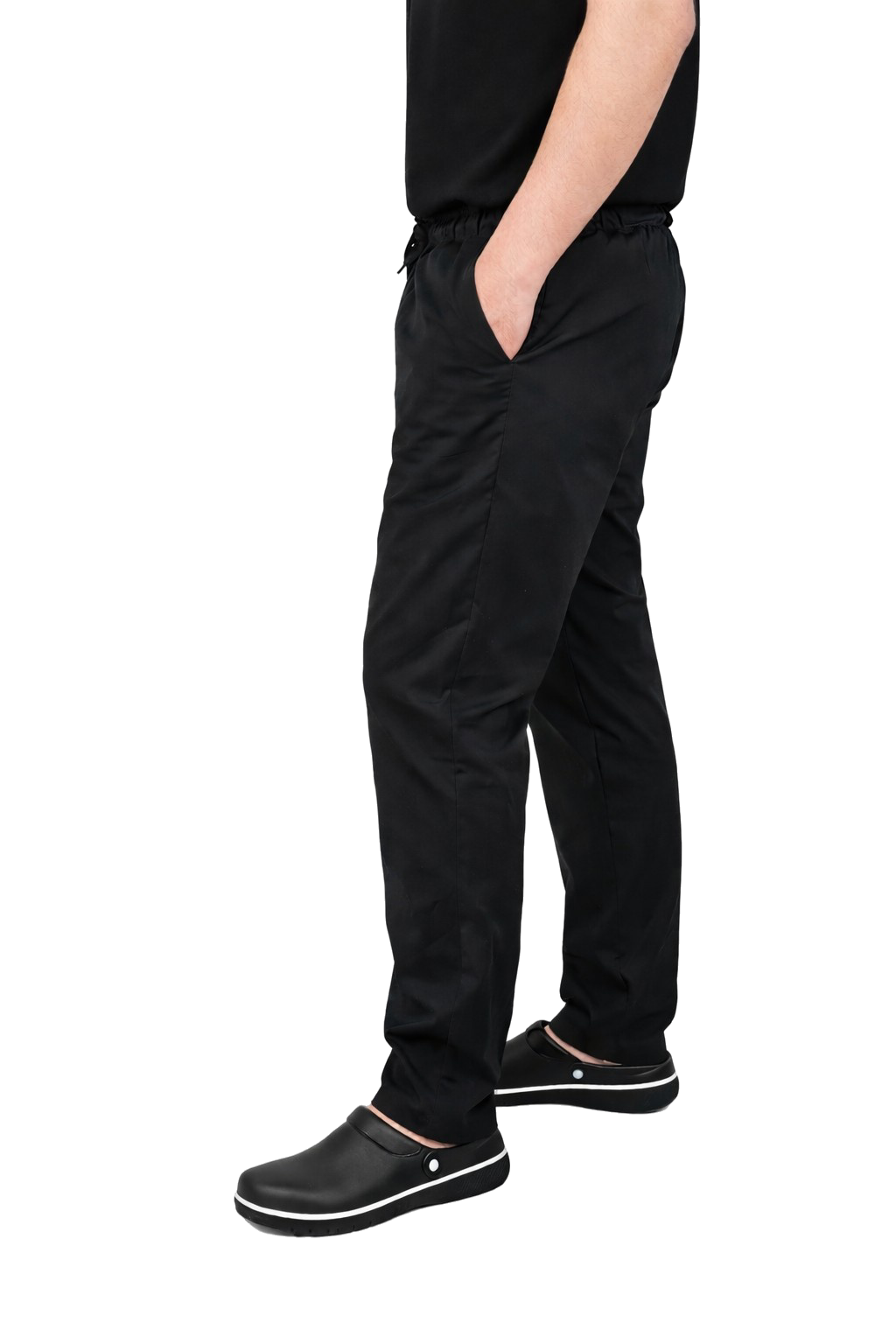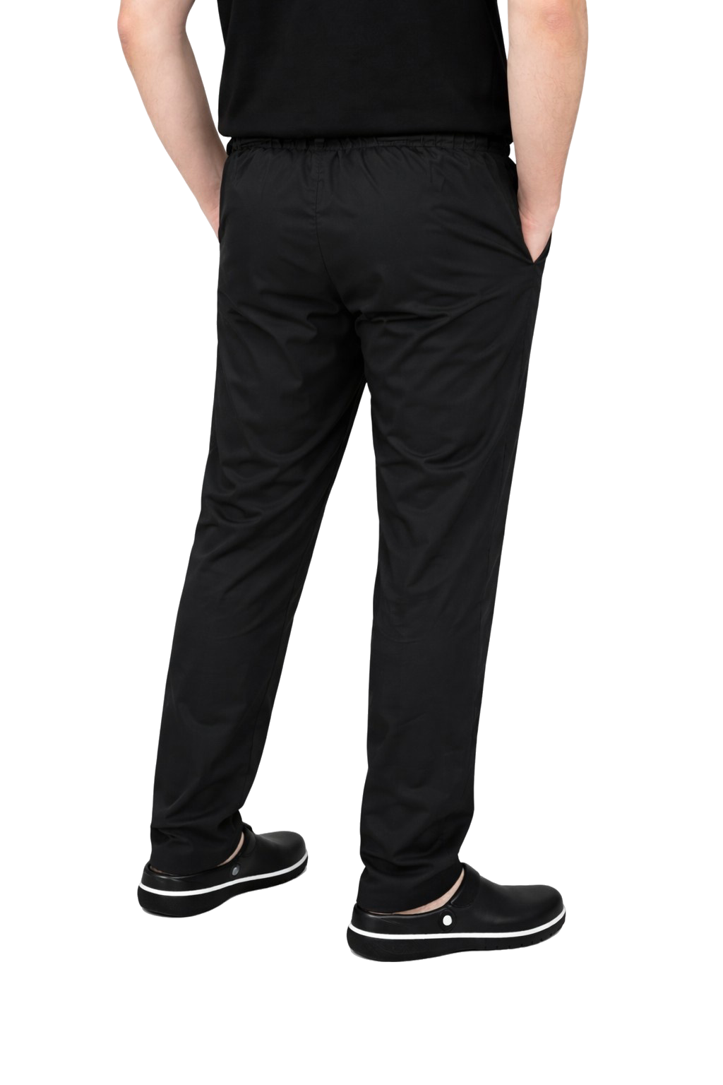 Comfortable chef trousers in the traditional black colour are a very popular model for chef clothing, matching both white and black chef blouses. The classic colour scheme is an asset and makes this one of the most popular designs. The chef trousers are a basic item of catering clothing. The trousers have practical two pockets and an adjustable waistband with elastic band. High-quality material makes the trousers comfortable to wear. The trousers' legs are tapered towards the bottom, giving them a unique character and modern look.