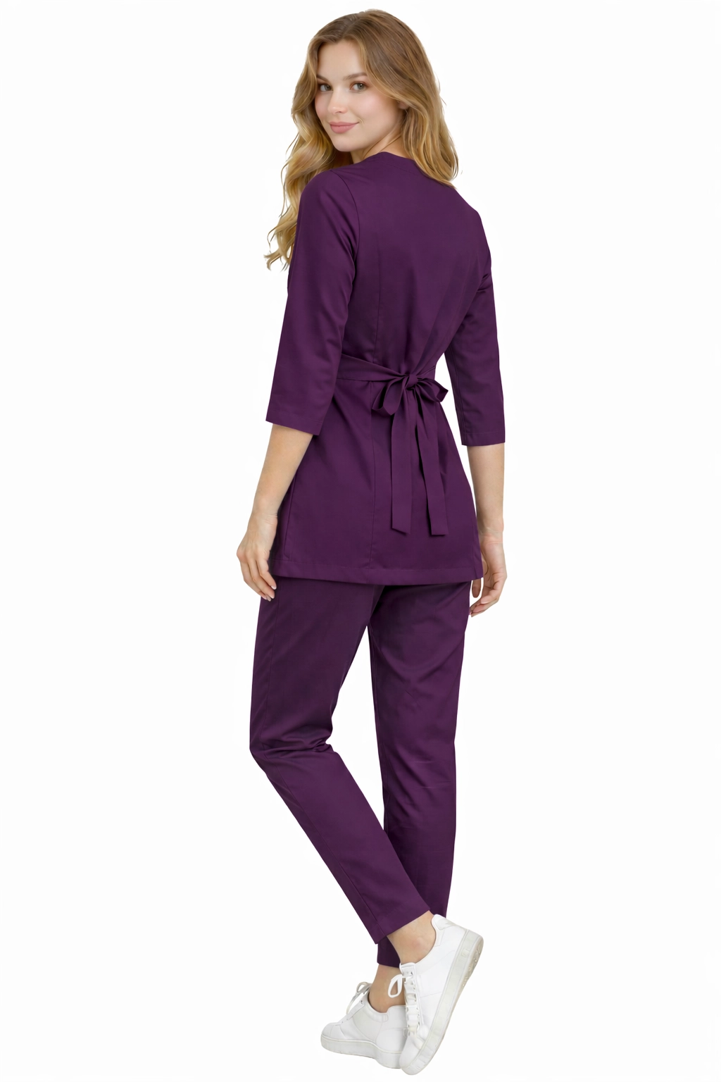The BASIC PREMIUM women's medical tunic in purple is an elegant and functional option for women who appreciate comfort and a professional appearance at work. The subtle, feminine colour combined with the wraparound design beautifully enhances the figure whilst ensuring freedom of movement.