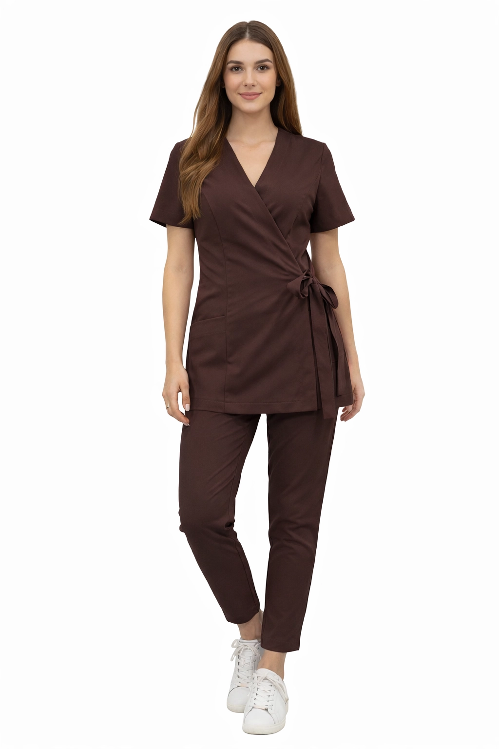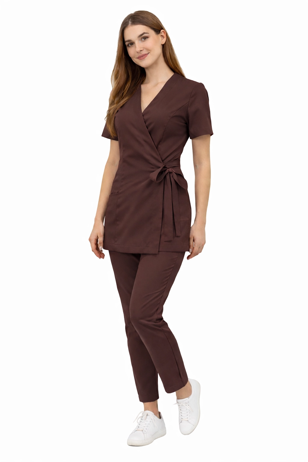 Basic premium medical set in chocolate colour - women's uniform for the medical and beauty industry