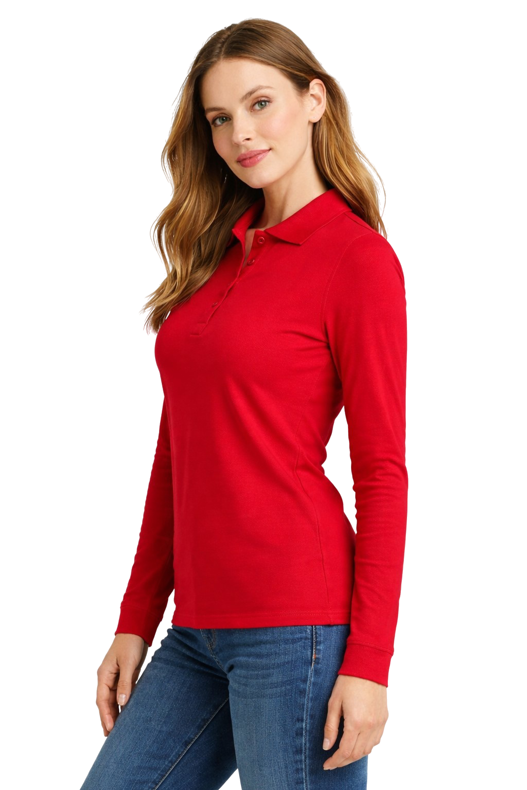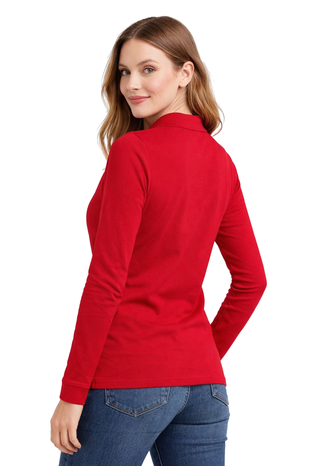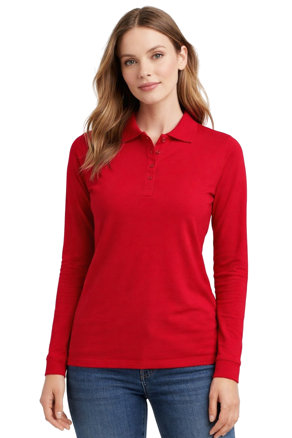 Ladies' polo shirt red long sleeve