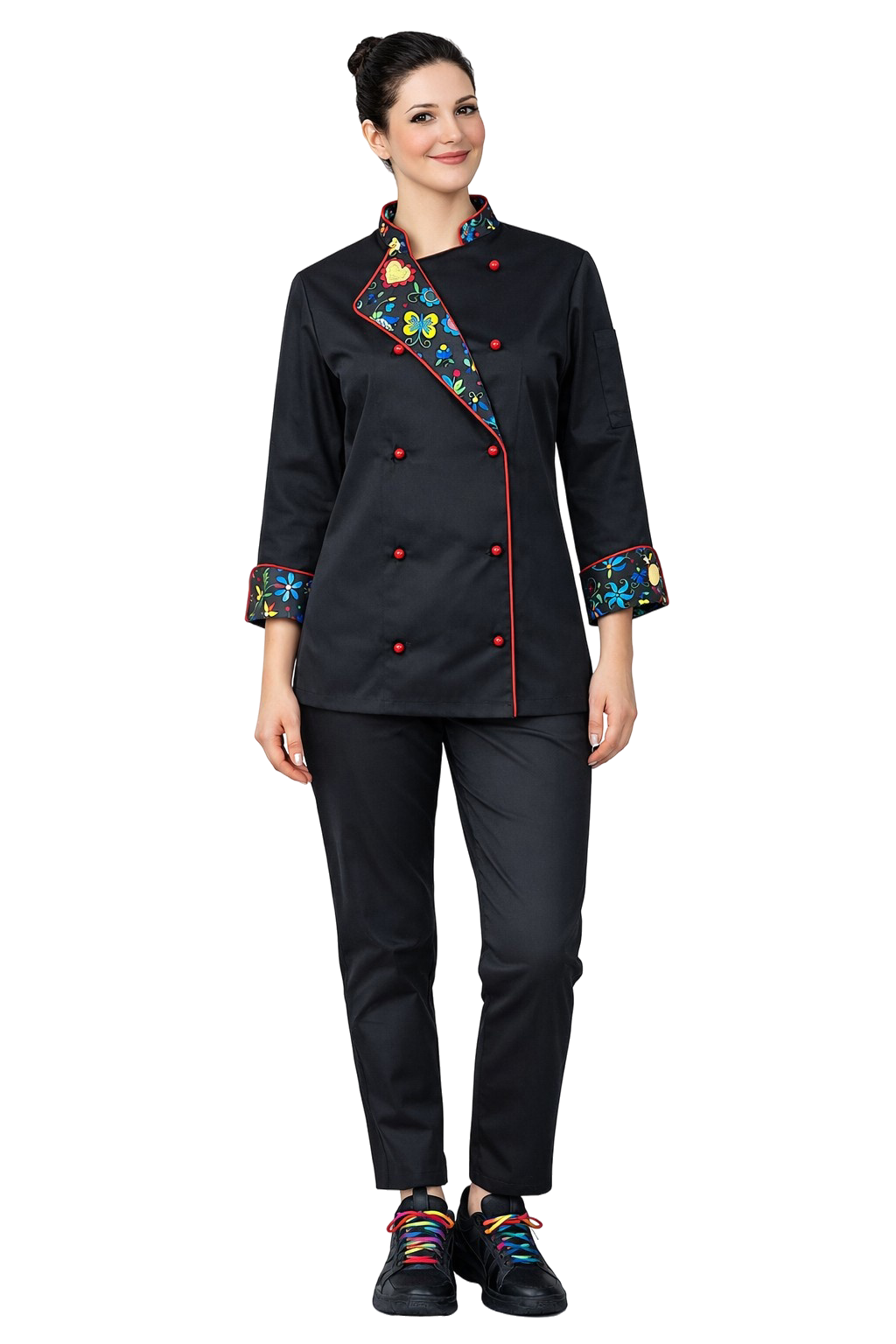 The MASTER CHEF Women's Culinary Set combines professionalism, comfort and unique style. The set consists of a tailored chef's jacket and comfortable work trousers. It is the perfect choice for women working in the catering industry who appreciate elegance and functionality in the workplace.