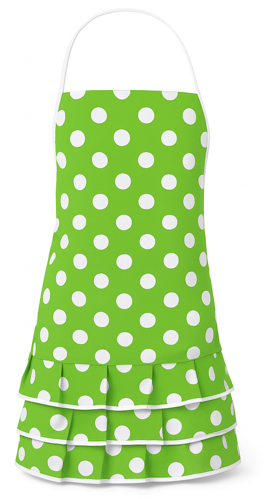 Introduce a splash of colour and joy into your kitchen with the green apron with white polka dots. This trendy and functional apron is perfect for everyday cooking as well as baking with family. Available in adult and children’s versions, it allows for the creation of charming family kitchen sets.