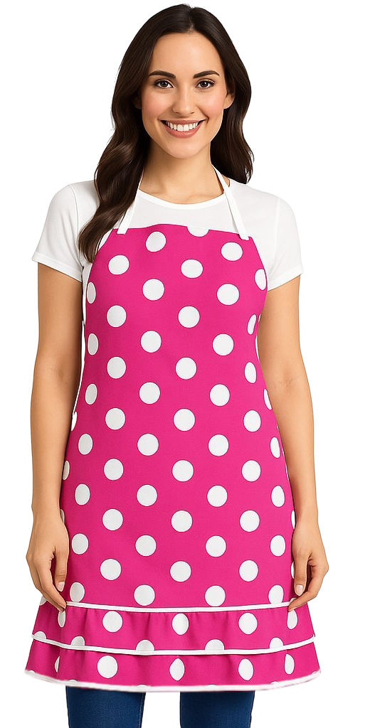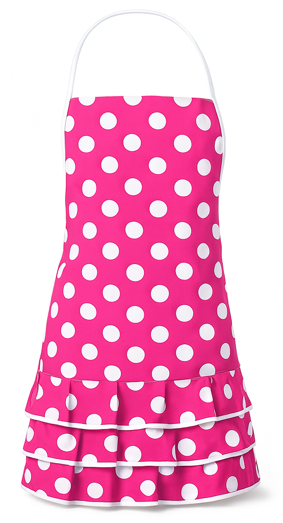 Introduce a splash of colour and joy into your kitchen with the pink apron with white polka dots. This trendy and functional apron is perfect for everyday cooking as well as baking with the family. Available in versions for adults and children, it allows for creating adorable family kitchen sets.