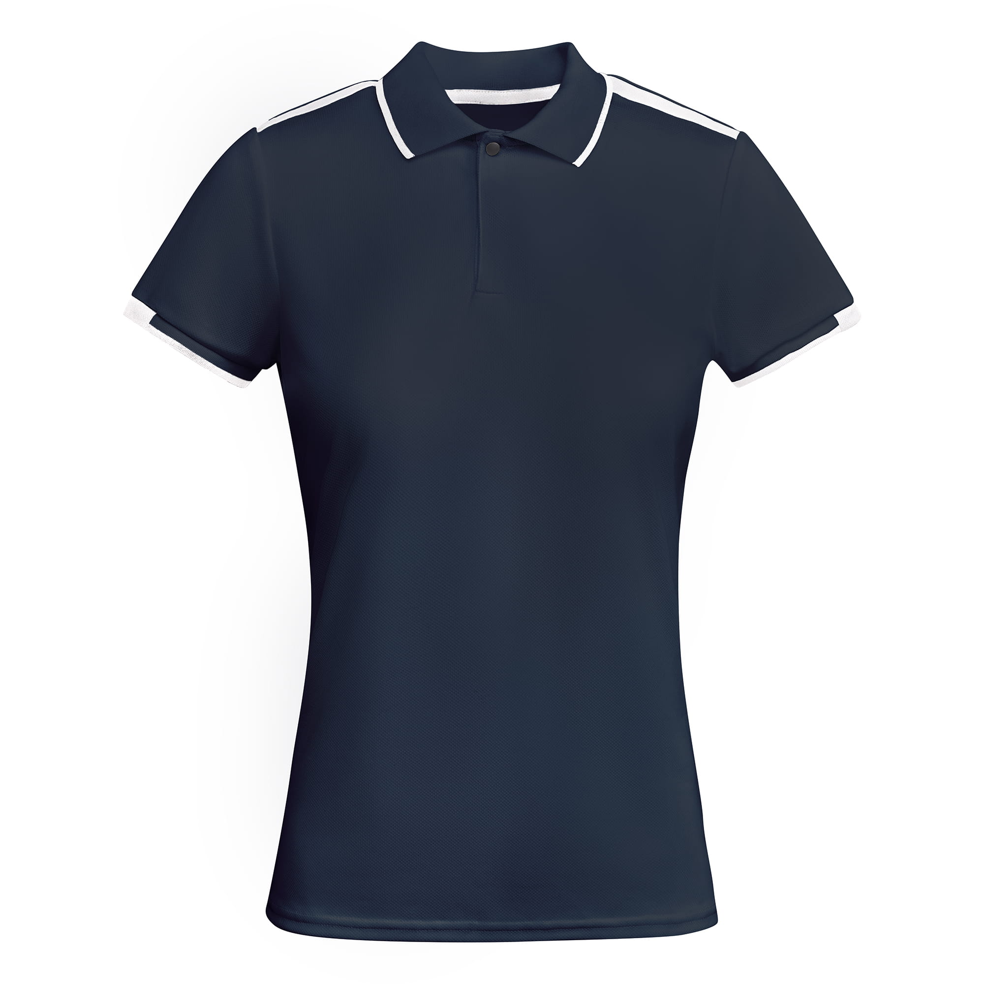 Women's elegant navy polo shirt with white inserts