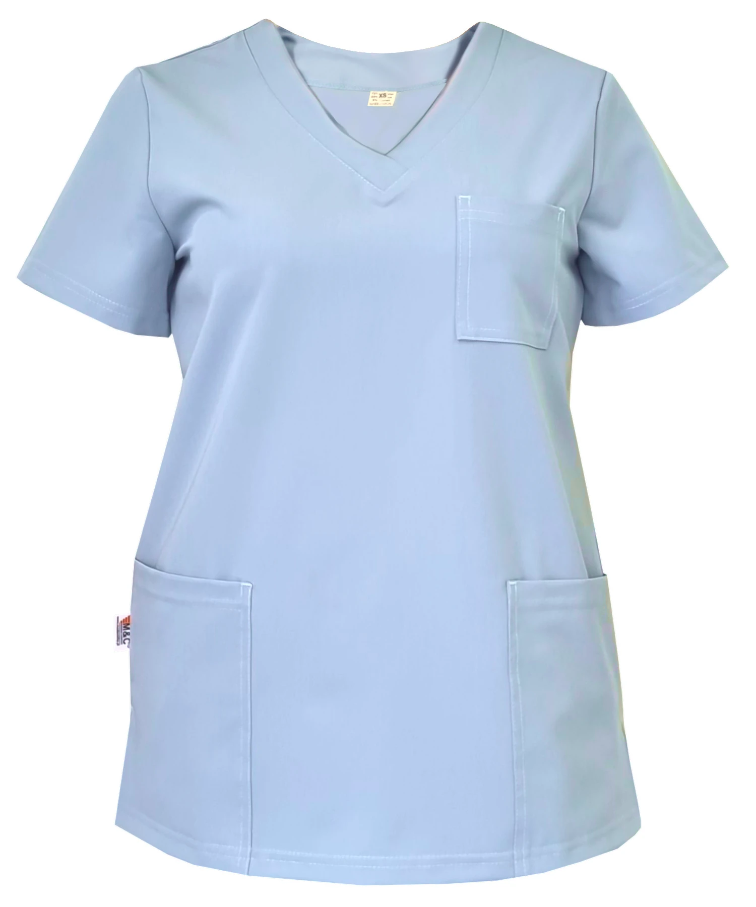 An elegant CASUAL PREMIUM women's medical blouse in blue, made from stretch fabric with the addition of viscose and spandex. Breathable, soft, and comfortable, with a heart-shaped neckline, waistcut design, and three practical pockets. Ideal for female doctors, nurses and women in the beauty industry. Invest in comfort and style with our Casual Premium medical blouse.