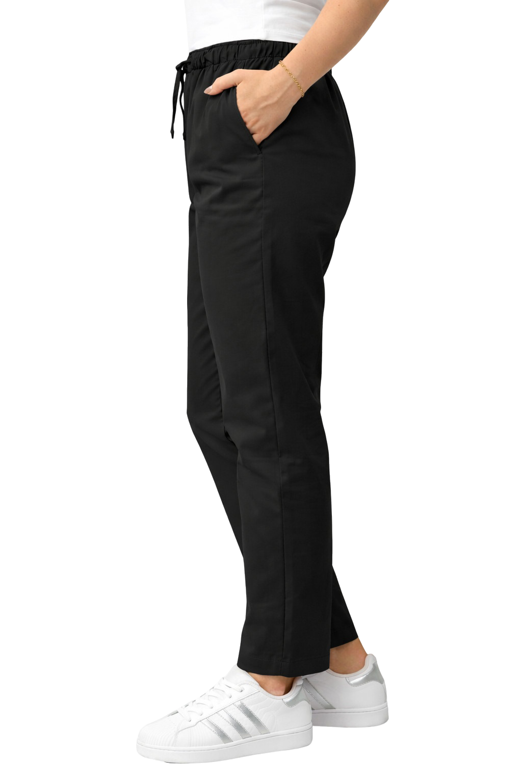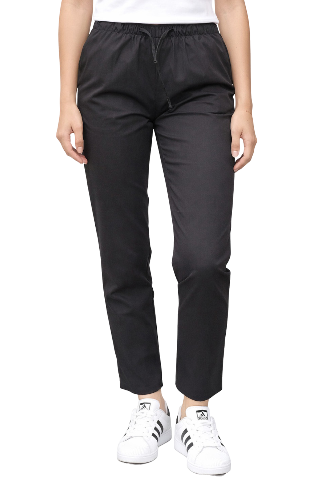 Style women's medical cigarette trousers with a simple and comfortable cut - ideal for women who appreciate classic style. They are finished with an elastic waistband with a trouser cord, which guarantees great wearing comfort and the possibility of adjusting the size. Additionally, the model has two discreet front pockets and straight and tapered legs, which follow the current fashion trends. The product is made from high quality fabric, making them extremely easy to clean.