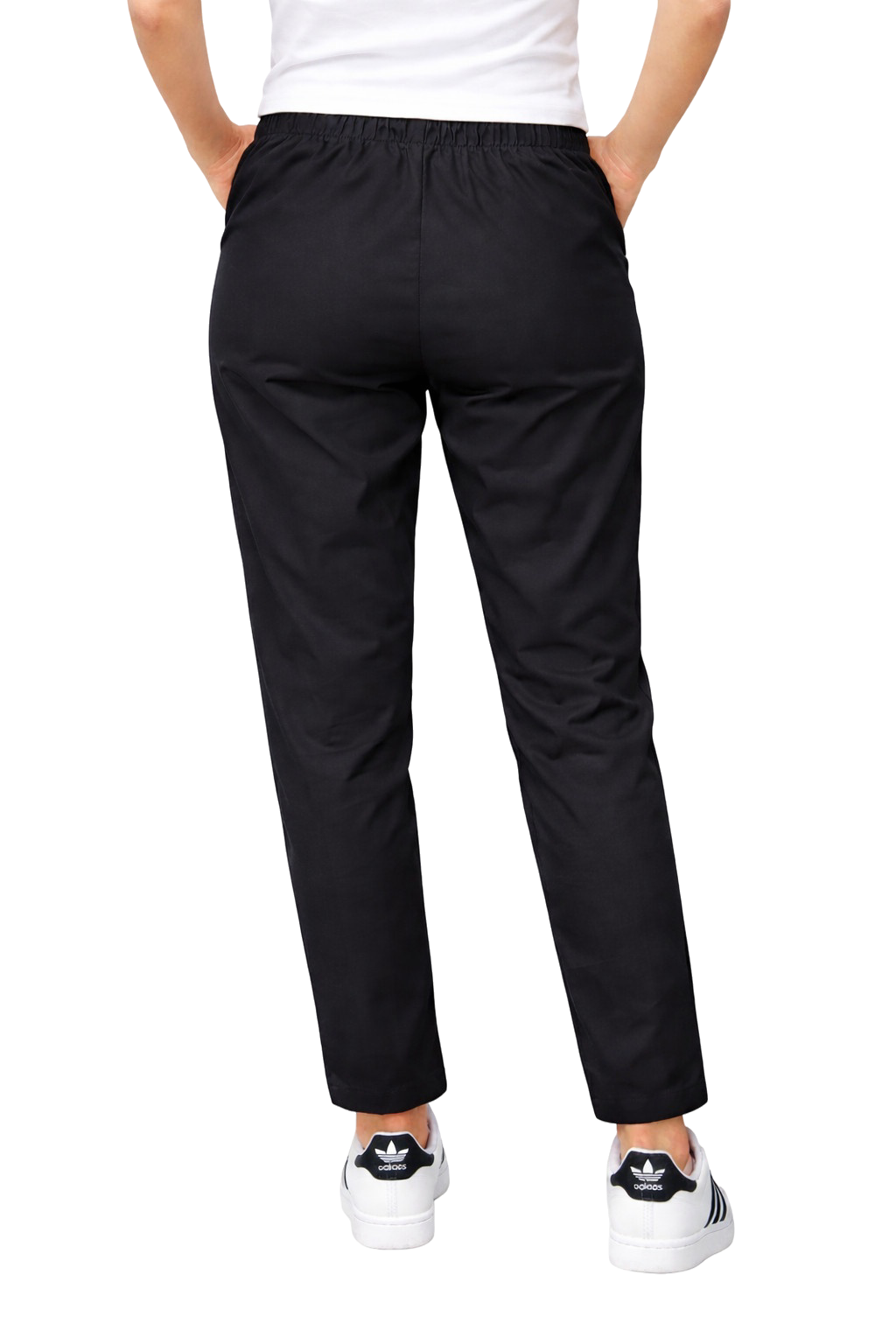 Style women's medical cigarette trousers with a simple and comfortable cut - ideal for women who appreciate classic style. They are finished with an elastic waistband with a trouser cord, which guarantees great wearing comfort and the possibility of adjusting the size. Additionally, the model has two discreet front pockets and straight and tapered legs, which follow the current fashion trends. The product is made of high-quality fabric, making them extremely easy to keep clean.